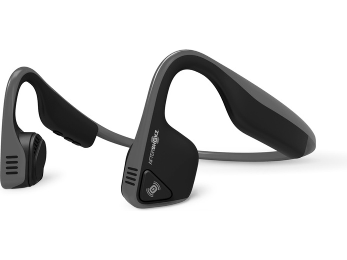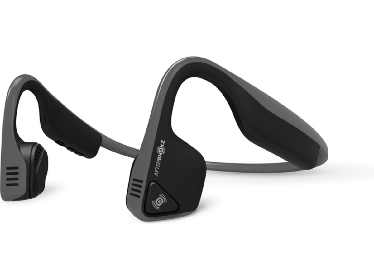 AfterShokz Trekz Titanium i grå farge er unike hodetelefoner som bruker vibrasjoner for å spille musikk.