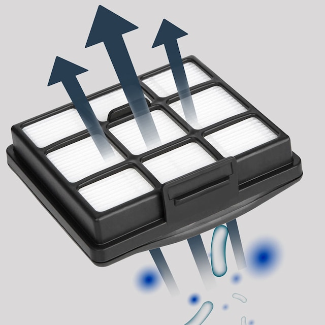 Ofte kan støvsugere slippe ut igjen skitten luft i hjemmet ditt. Støvsugeren fra iiglo har imidlertid et utskiftbart HEPA12-filter som fanger opp og filtrerer bort 99,5 % av støvpartikler og allergener, og slipper ut renere luft og forbedrer bomiljøet.