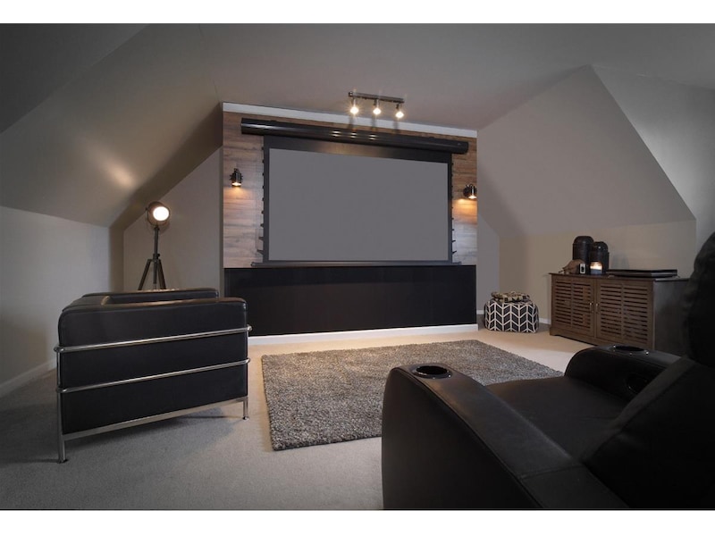 A complete integration kit along with full IR/RF control package is included as well as a 5-12v trigger to coordinate the screen’s drop and rise with the projector’s power cycle. All this is included in a stylish arcuate-profiled aluminum casing with white enamel coating and flush-wall floating brackets.