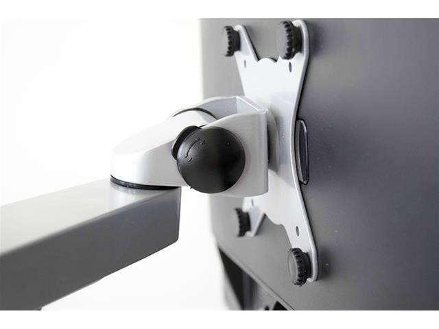 Monitorarmen kommer med både klemmefeste og gjennomgående feste, noe som gjør det fleksibelt å plassere skjermen på bordet. Alle ledd på armen er utstyrt med settskruer slik at skjermen kan låses i fast posisjon.