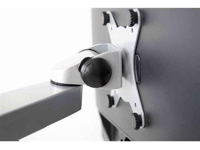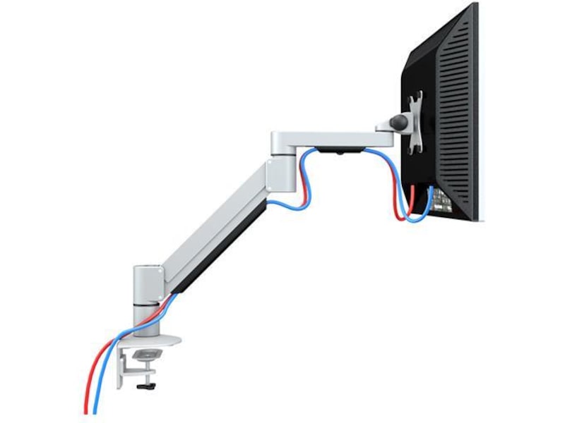 Monitorarmen kommer med både klemmefeste og gjennomgående feste, noe som gjør det fleksibelt å plassere skjermen på bordet. Alle ledd på armen er utstyrt med settskruer slik at skjermen kan låses i fast posisjon.