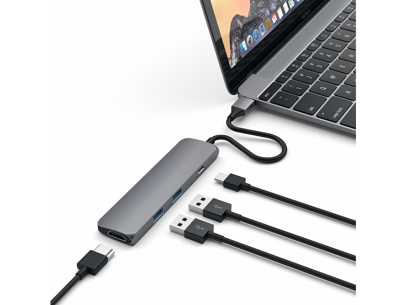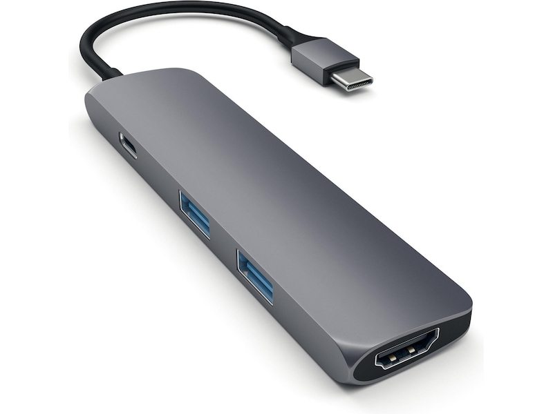 Satechi Slim Type-C flerportsadapter med 4K HDMI videoutgang og to USB 3.0-porter