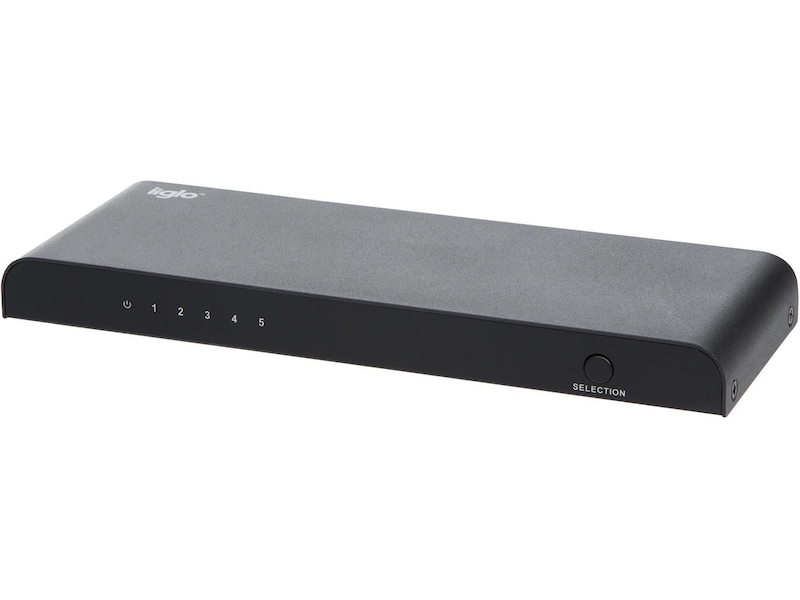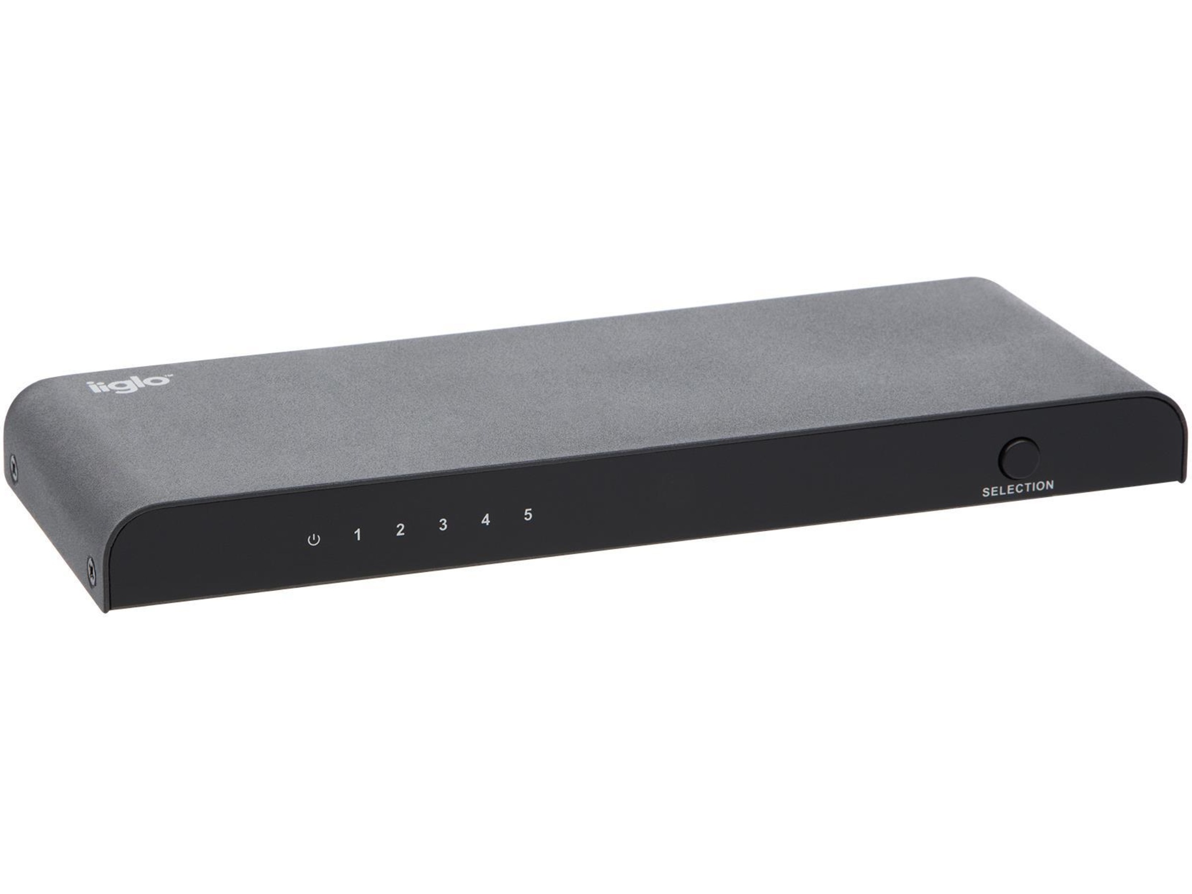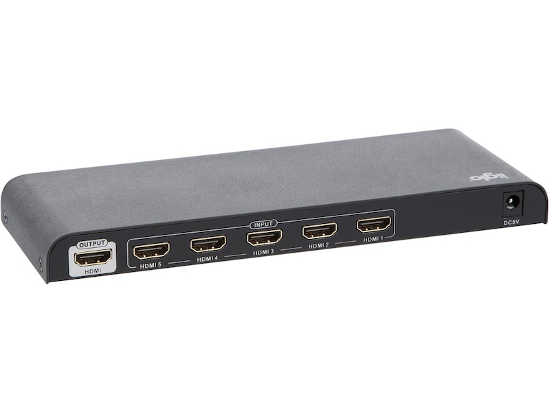 iiglos manuelle switch har fem HDMIporter inn og en HDMIport ut.