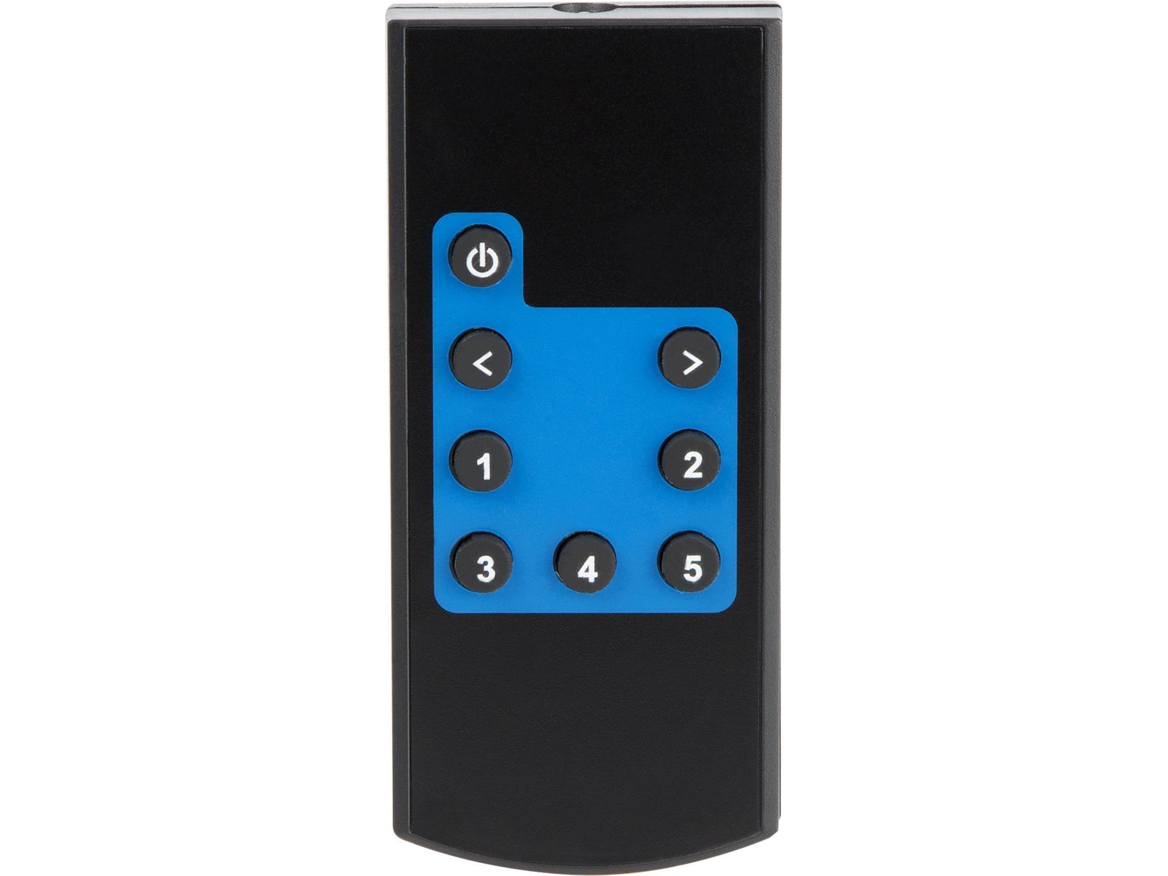 Du velger enkelt hvilken HDMIport som skal brukes, enten med den inkluderte fjernkontrollen eller med en knapp du finner på forsiden av switchen.