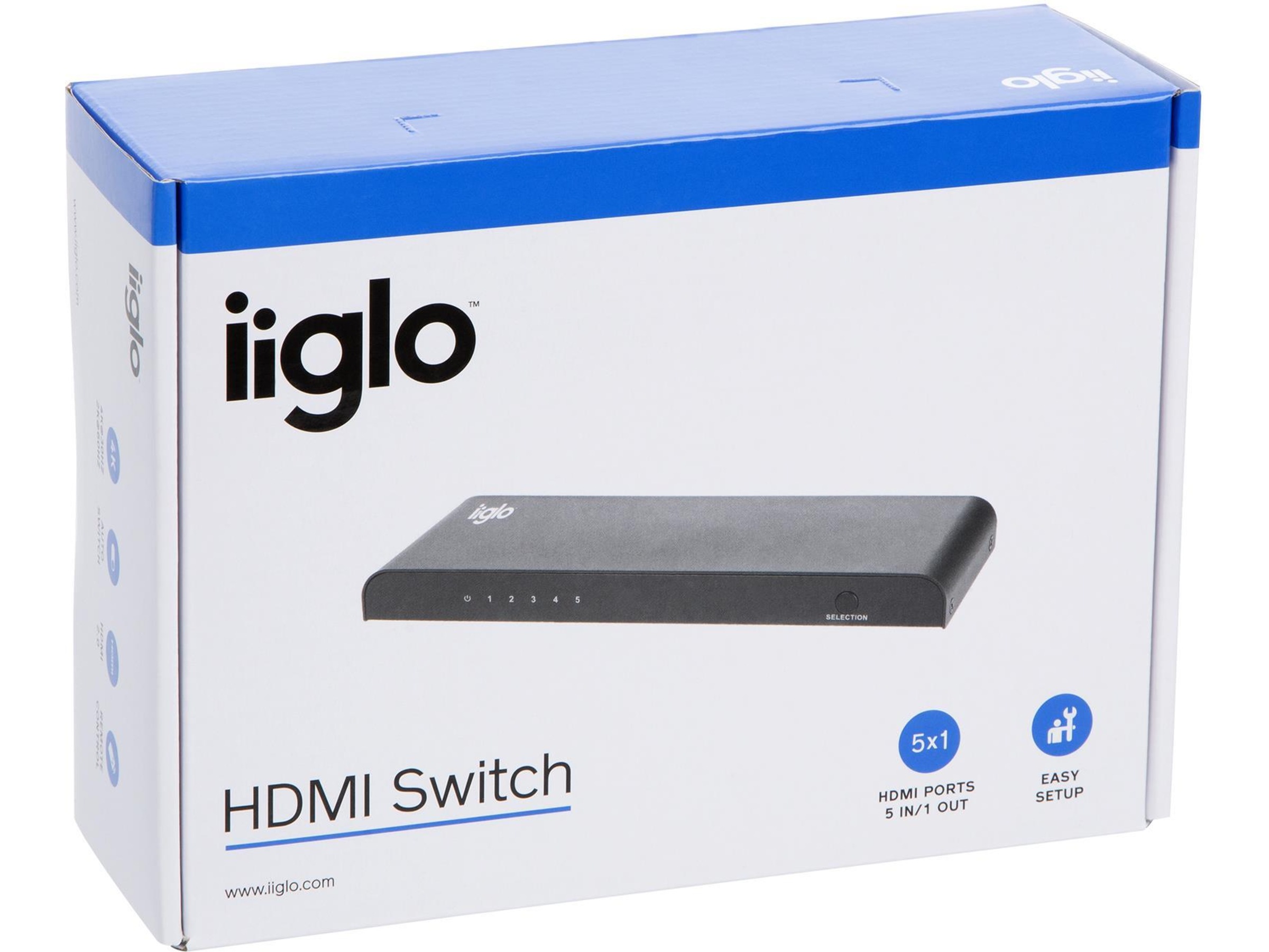 iiglo 5 porter HDMI automatisk switch er en meget enkel HDMI switch med fem HDMI porter inn og én HDMI ut.