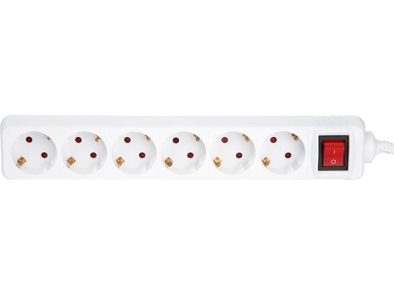 Denne strømforgreneren er jordet og har seks uttak og en tilkobling. Den har en av/på-knapp og barne-/pirkesikring for ekstra sikkerhet. Kabelen er 1,5 meter lang.