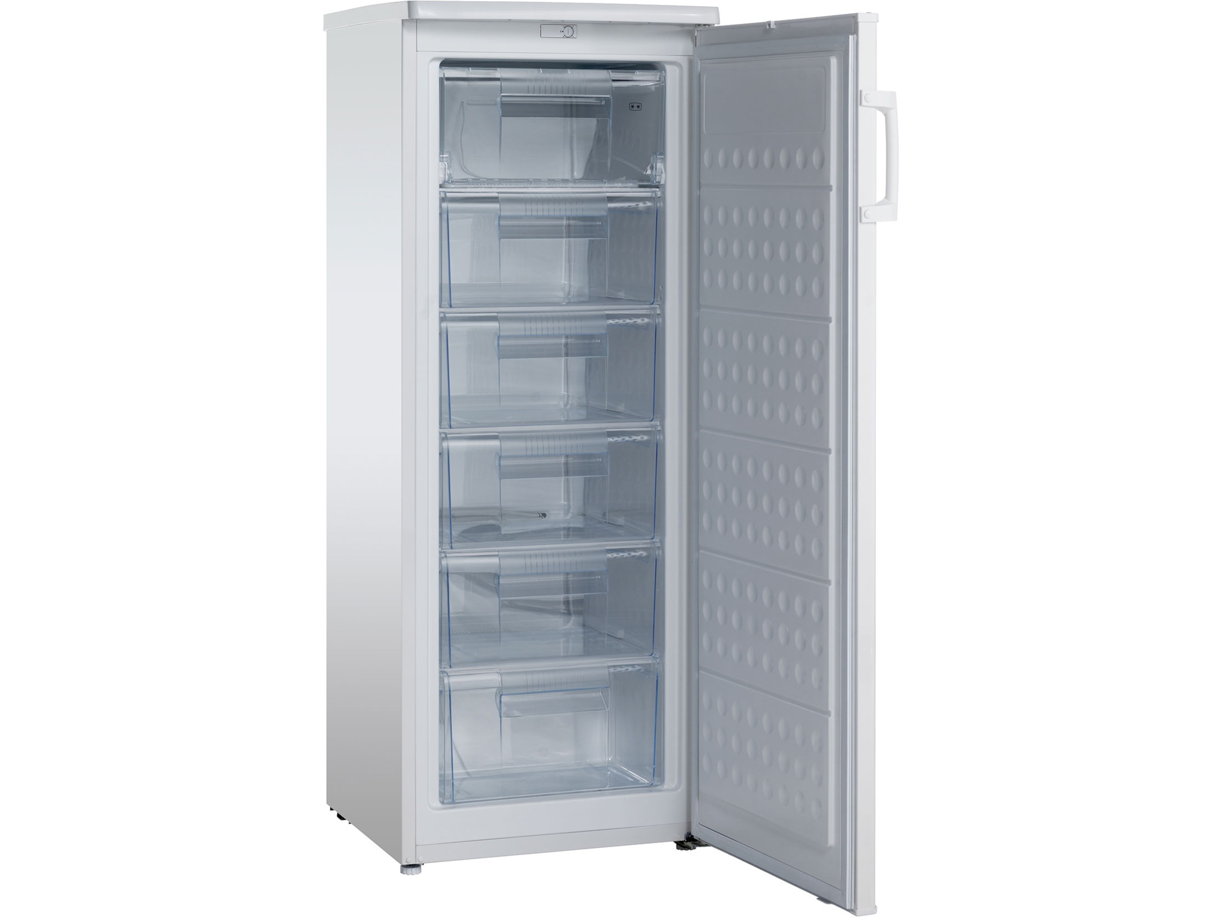Fryseren SFS 206 W har en god størrelse for de fleste husholdninger og er ideell som supplement for å få ekstra frysekapasitet dersom et kombinert kjøle-/fryseskap ikke lenger er nok. Den øverste hyllen i fryseren har en fryseklaff, og under den finnes det fem gjennomsiktige fryseskuffer. Det frittstående fryseskapet har justerbare føtter slik at det kan stå flatt på alle underlag. Skapdøren åpnes mot høyre, men døren kan også snus slik at skapet kan plasseres fleksibelt i alle slags rom.