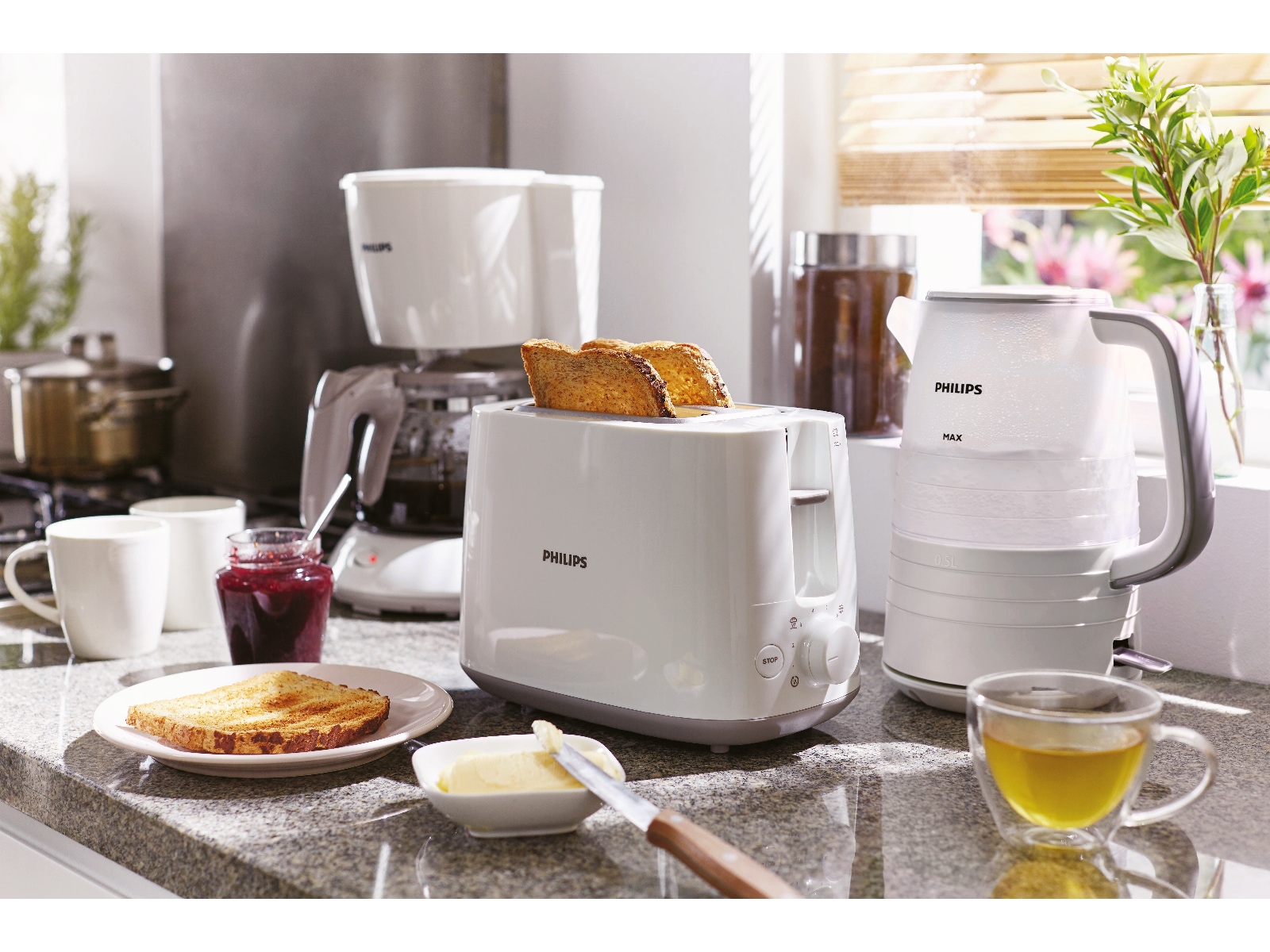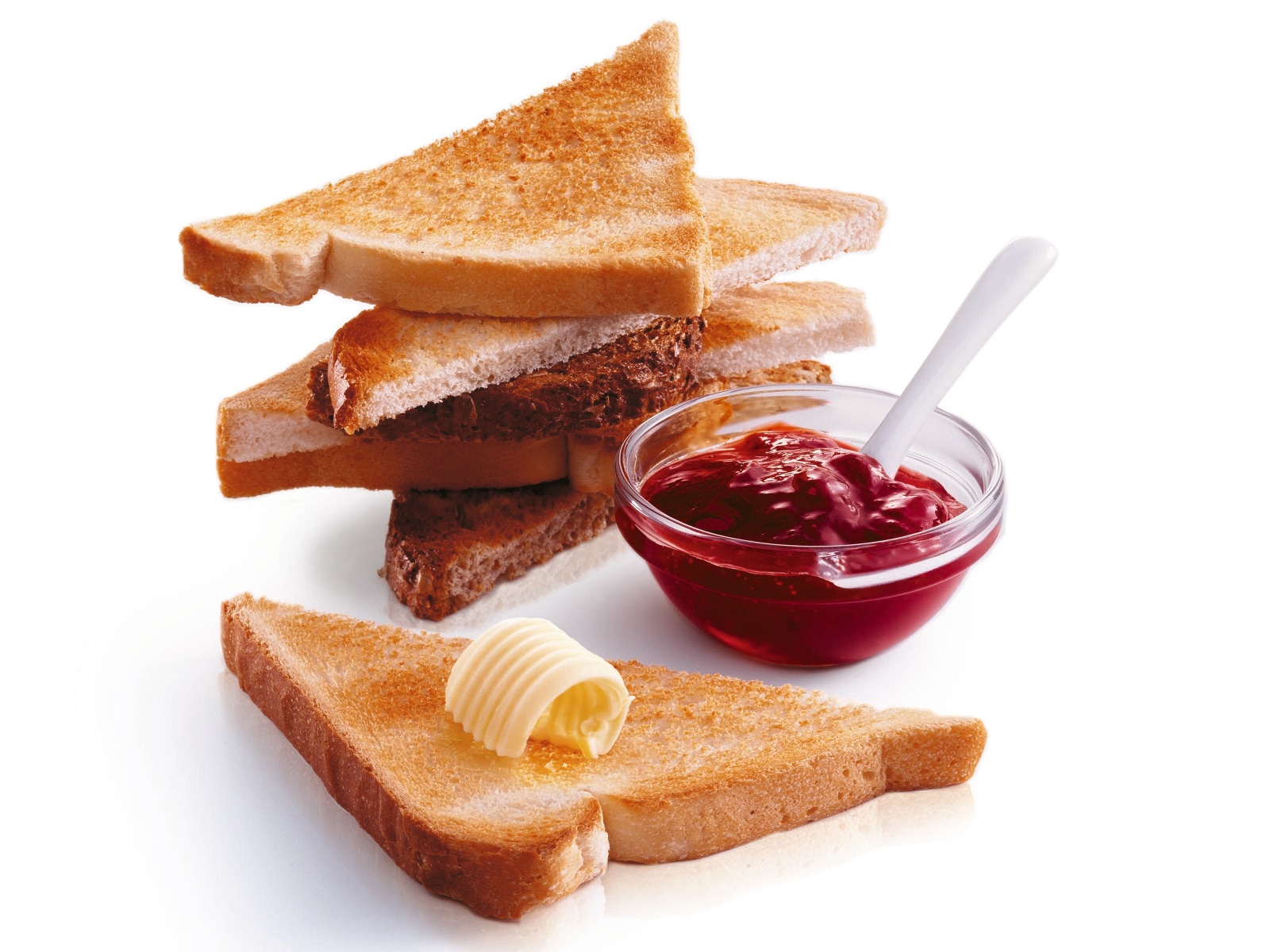 Gjenoppvarmingsfunksjonen varmer opp ristet brød på få sekunder, og opptiningsfunksjonen rister frosne brød i én omgang.