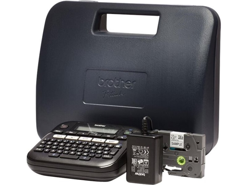 Alt du trenger er inkludert - en strømadapter for å spare på kostnadene for batterier, og sort på hvit TZe-tape slik at du kan starte merking umiddelbart. Alt er plassert i en solid koffert.