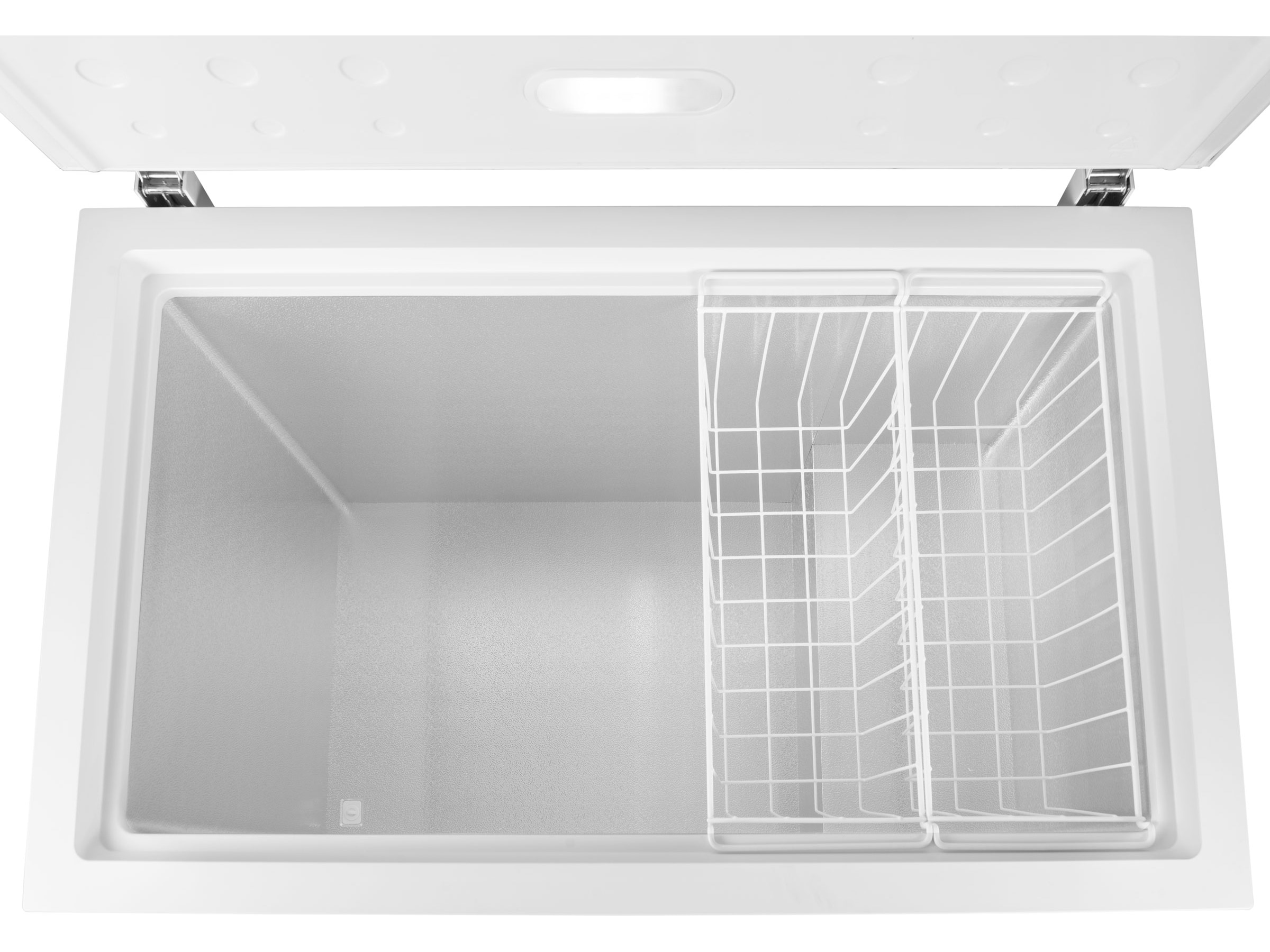 Fryserlokket er utstyrt med to solide og balanserte hengsler. Disse holder toppen på plass når den åpnes, og forhindrer skader som fastklemte fingre.