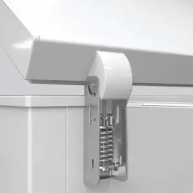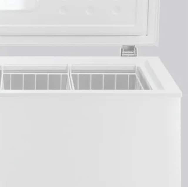 Fryserlokket er utstyrt med to solide og balanserte hengsler. Disse holder toppen på plass når den åpnes, og forhindrer skader som fastklemte fingre.