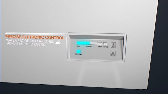 Et brukervennlig kontrollpanel og en elektrisk termostat gjør det enkelt å justere temperaturen. «Super»-knappen på det digitale displayet gir ekstra rask frysing av mat. Etter fire timer tilbakestilles temperaturen automatisk til forrige innstilling.