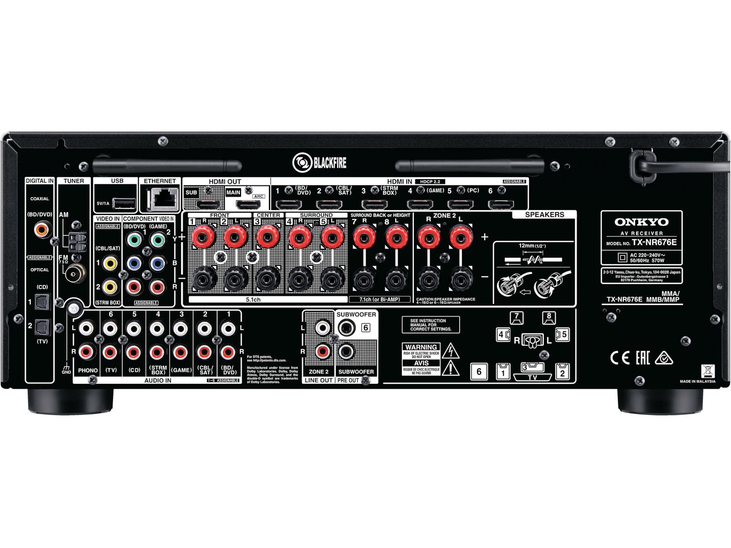Onkyo TX-NR676 B, surroundreceiver, sort