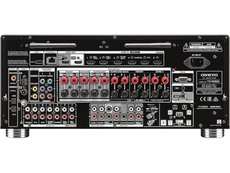 TX-RZ820 er Onkyos flaggskip i deres 7-kanals serie av hjemmekinoreceivere. Det er en innovativ og godt spesifisert 7-kanals hjemmekinoreceiver med støtte for de nyeste bildesystemene, Dolby Vision, HDR10, BT.2020, og de nye multidimensjonale lydsystemene, Dolby Atmos og DTS:X. Bildeegenskapene er forøvrig av beste klasse med videoformatet 4K UltraHD / 60 Hz (4:4:4), HDCP 2.2 innholdsbeskyttelse og 6G video. Receiveren har rikelig med tilkoblingsmuligheter med blant annet 7.2 pre out, 7 HDMI-innganger og HDMI sone 2-uttak med valg av digitale lydkilder. TX-RZ820 er meget godt utstyrt med internettradio, nettverksavspilling fra DLNA-kompatible enheter og Spotify Connect og Tidal. AirPlay, Bluetooth, Google Cast og Wi-Fi gir trådløs musikkstrømming. En premium-kvalitets 384 kHz / 32 bit DAC, AK4458, og en unik digital filterteknologi, sørger for full utnyttelse av de høyoppløste lydformater, som 5,6 MHz DSD og FLAC 192kHz/24 bit, med en fantastisk klar gjengivelse uten jitter-forvrengning. Onkyos Controller-app gir full kontroll fra smarttelefonen. AccuEQ romkalibreringssystemet sammen med AccuReflex-teknologi gir faseren gjengivelse og optimal tilpasning til rommets akustikk med eliminering av stående bølger. THX Select 2 Plus-sertifisering gir en garantert referanse-effekt for en optimal hjemmekinoopplevelse. Forsterkeren har en utgangseffekt på 180 watt per kanal og er kraftig bygget med stor transformator, store, audiofile kondensatorer og helt adskilte kretsløp for analoge og digitale kretsløp. Frekvensområdet er ekstra utvidet og går helt ned til 5 Hz så man også kan føle de dypeste bassvingningene. IR-tilkobling, triggerutgang og RS232-kontakt sammen med 7.2 forforsterkerutganger gjør receiveren ypperlig til bruk i et større, systemstyrt oppsett. Ultra HD-videoformat, 4K/60 Hz, 4:4:4 (full farge), Dolby Vision Støtter HDCP 2.2 DRM innholdsbeskyttelsessystem 7 x 180 watt med Dynamic Audio Amplication Forsterker med diskrete komponenter og store, audiofile kondensatorer Digitale støyfiltre, VLSC, for renere hi-fi-lyd THX Select2 Plus-sertifisering er en garanti for nok ytelser Trådløs strømming via AirPlay, Bluetooth, Google Cast og Wi-Fi Spotify, Tidal, internettradio og avspilling av lydfiler via DLNA Spotify Connect via gratis Onkyo Controller-app 7 HDMI-innganger og en HDMI sone 2-utgang USB-inngang med strømuttak for kilde Platespillerinngang og 7.2 pre out Sone 2 linje- og høyttalerutgang med valg av digital lydkilde Sone 3 linjeutgang Dolby Atmos og oppgradering til DTS:X surroundsystem AccuEQ med målemikrofon for automatisk oppsett Premium 384 kHz / 32 bit DAC, AK4458 RS232-kontakt, 12 V triggerutgang og IR-tilkobling FireConnect-teknologi for trådløs multirom-løsning Multifunksjonsfjernkontroll (RI) Mål (B x H x D): 43,5 x 20,2 x 39,5 cm Vekt: 14 kg