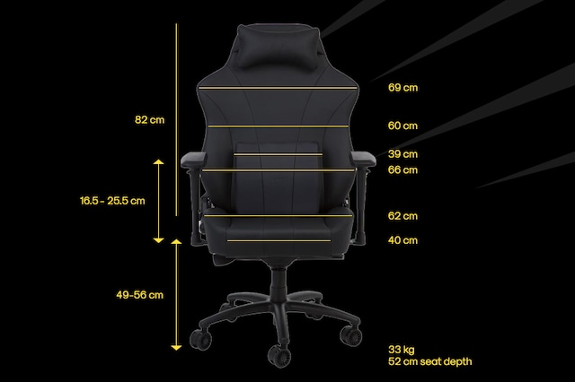 For de som interesserer seg for specs, kommer stolen med en utholdende gasslift med klasse-4 sylindre, som tåler 150 kg