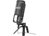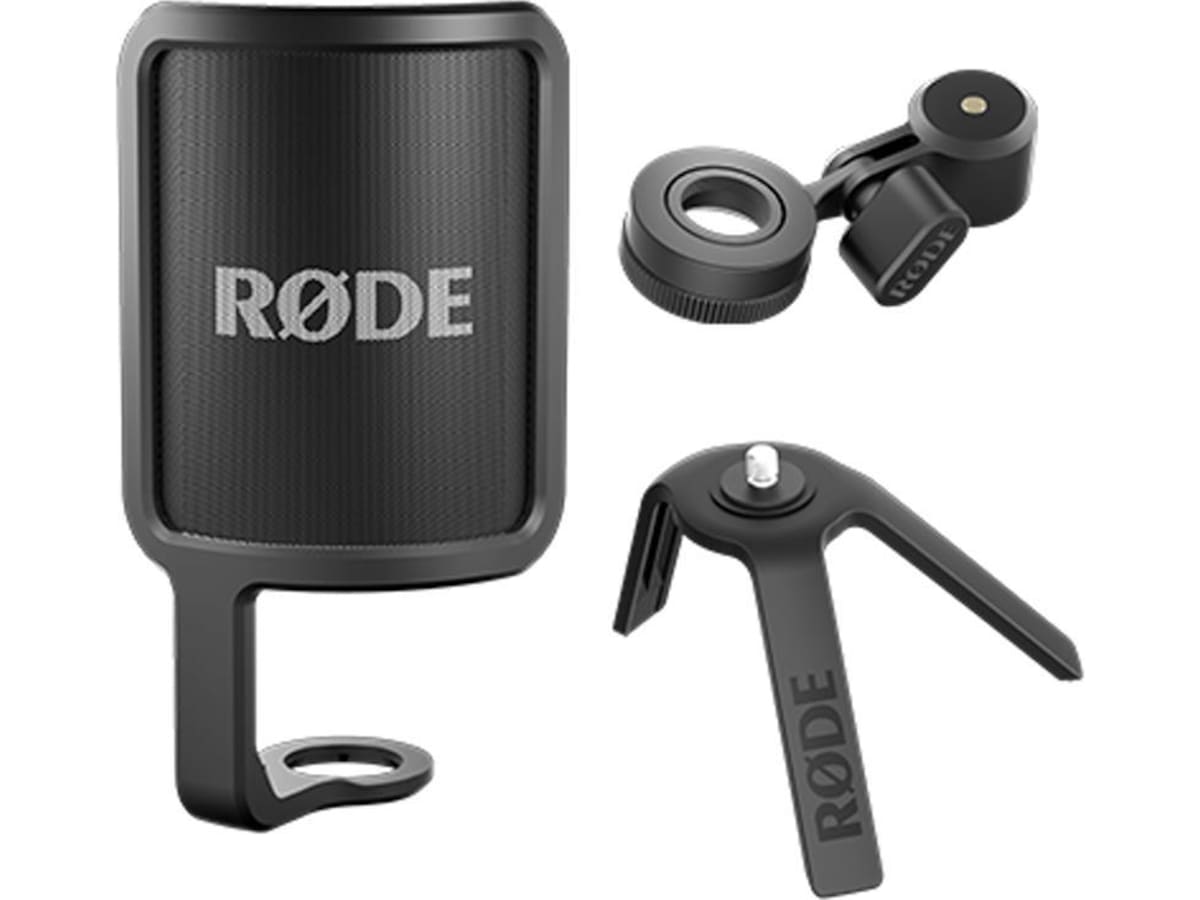 6m USB-kabel, pop-filter, støvpose, bordstand og mount følger med i esken.