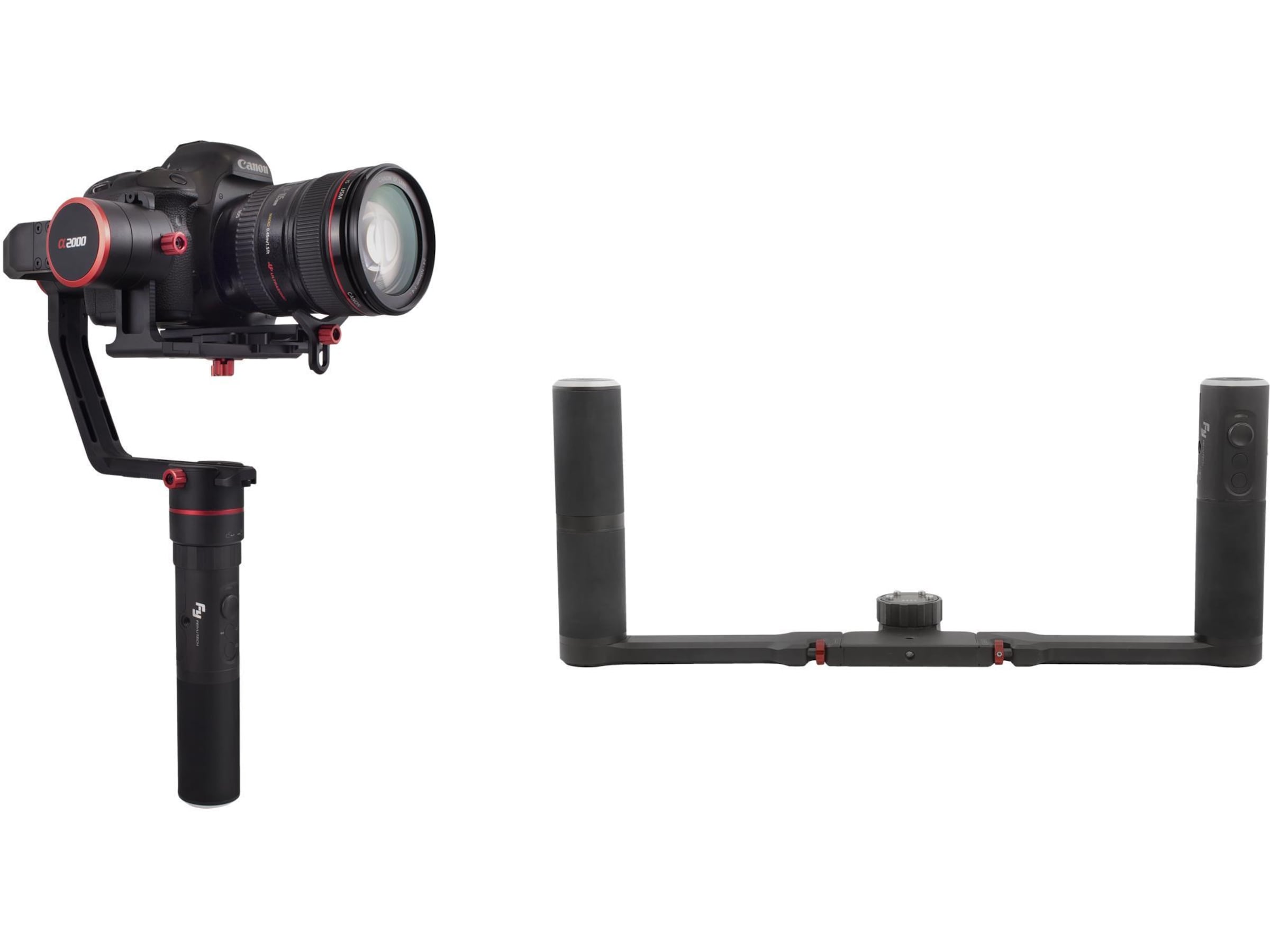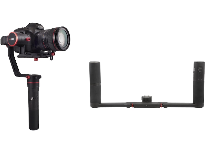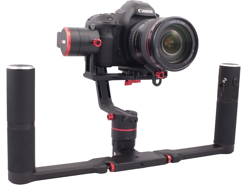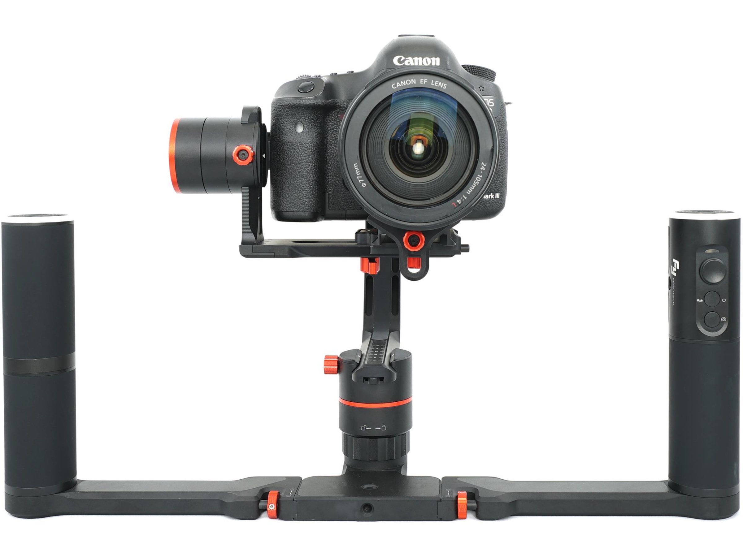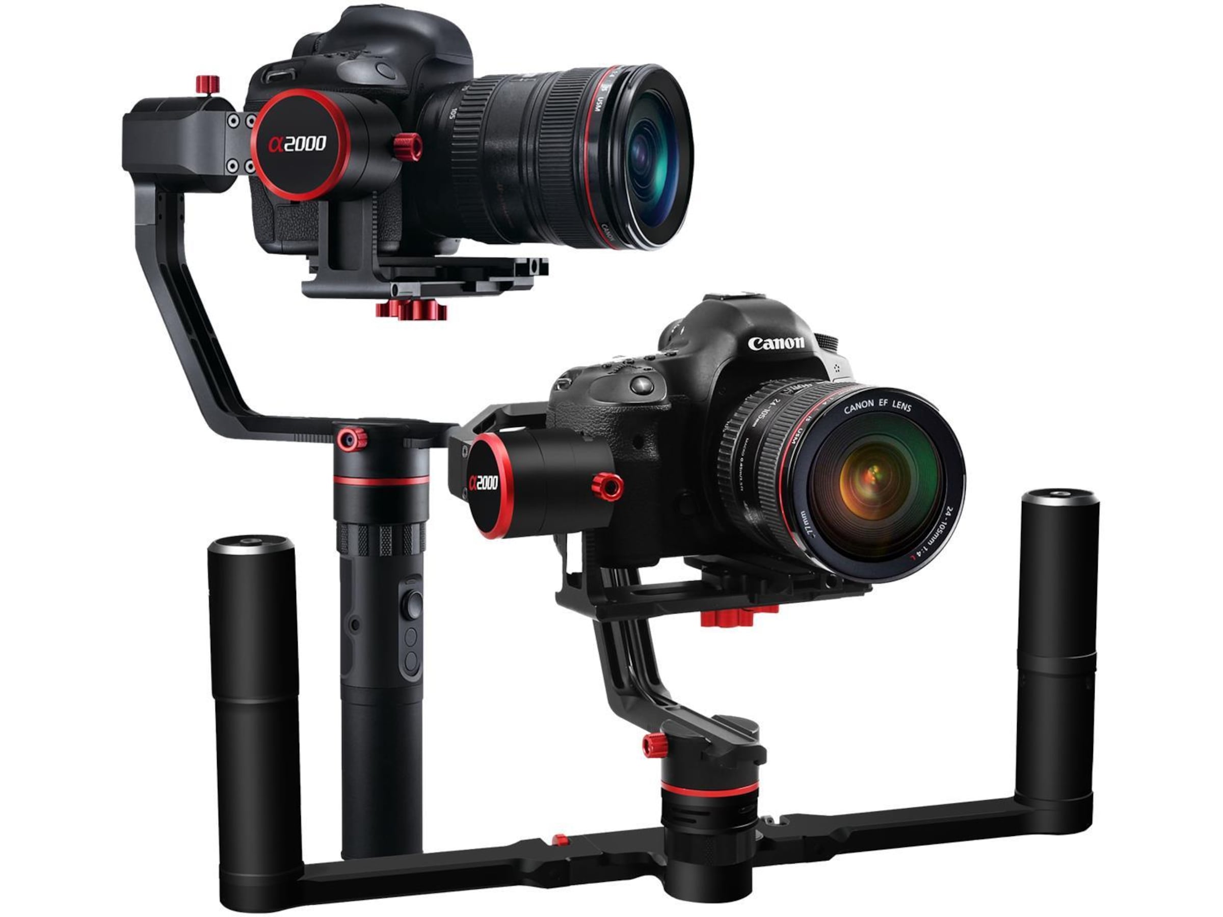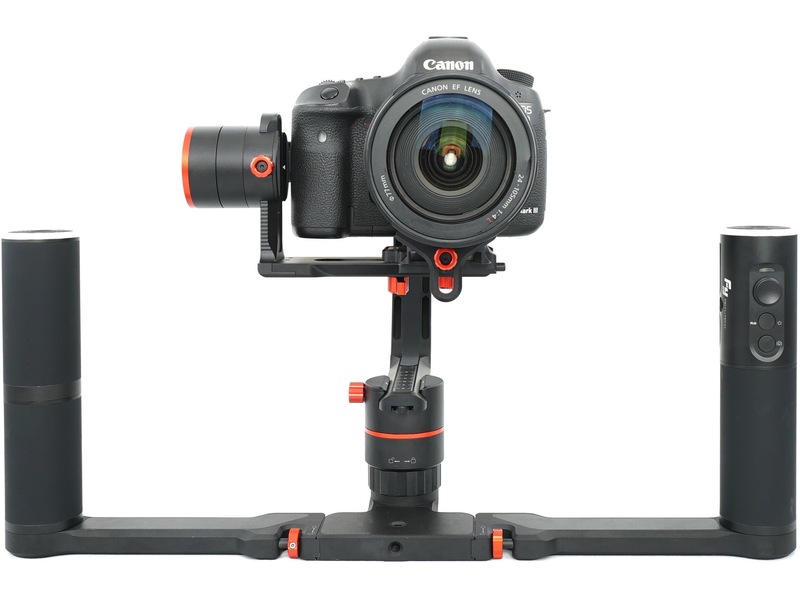 3-aksers håndholdt gimbal med 360 grader rotasjon og en lastevekt på opptil 2 kg (som inkluderer de fleste speilløse og DSLR-kameraer)