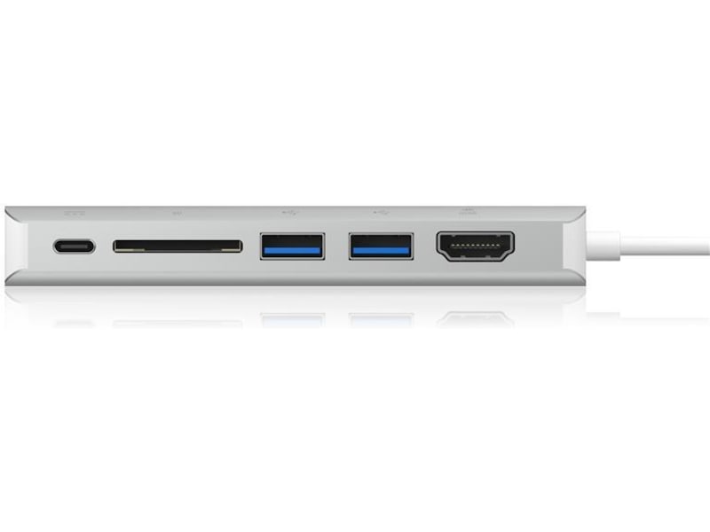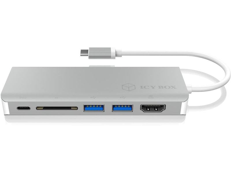 - Utganger: 1x høyhastighets HDMI Type-A (opp til 3840x2160@30 Hz) 2x USB 3.0 Type-A (USB 3.0 nedadgående kompatibel med USB 2.0) 1x Ethernet RJ45, 1x SD-kortleser (testet opp til 128 GB) 1x USB Type-C med Power Delivery (PD)-strømleveringsfunksjon (max. 20 V@3 A)