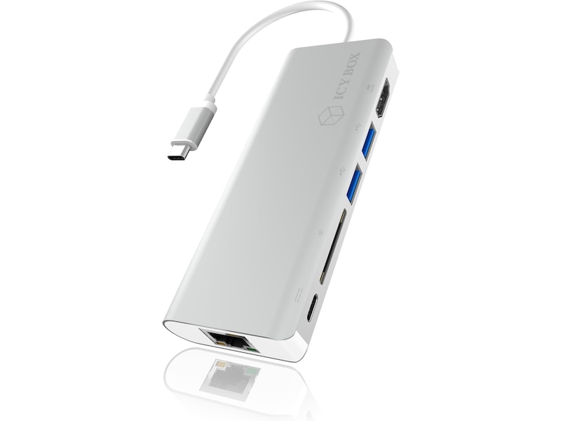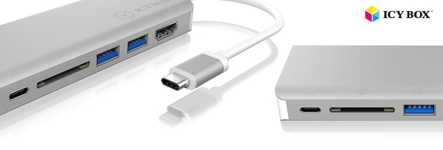 Med en USB Type-C-host, er døren åpnet for fem ekstra porter, 1x Gigabit Ethernet, 1x SD kortleser, 1x HDMI® og 2x USB 3.0 Type-A er åpnet. I tillegg, mobilenheter kan bli ladet når den passende strømtilførselsen er tilkoblet.