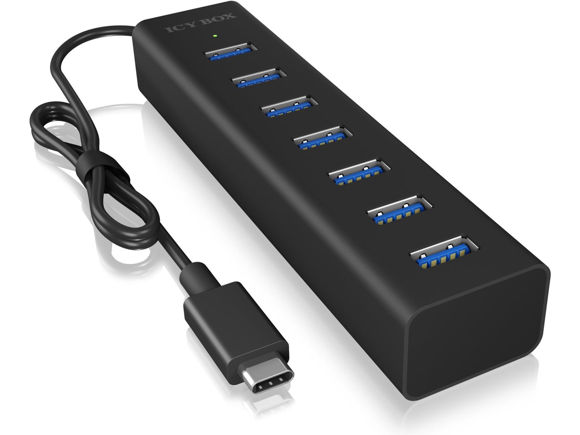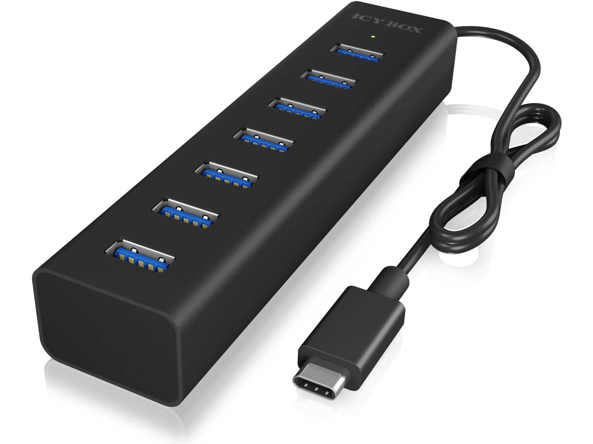 7 x USB 3.0 output Type A, 1 x USB-C-inngang Type C