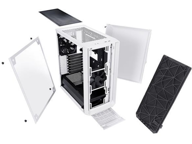 Maskefrontpanel, Kabelstyringsklemme, Støtter 120/240 mm-radiator på toppen, Toppanelsstøvfilter, Frontstøvfilter, Støtter 120/140/240/280/360-mm radiator i frontpanel, Støtter 120 mm-radiator bak, Vibrasjonsabsorberende stasjonsbrønner, Bunnstøvfilter |