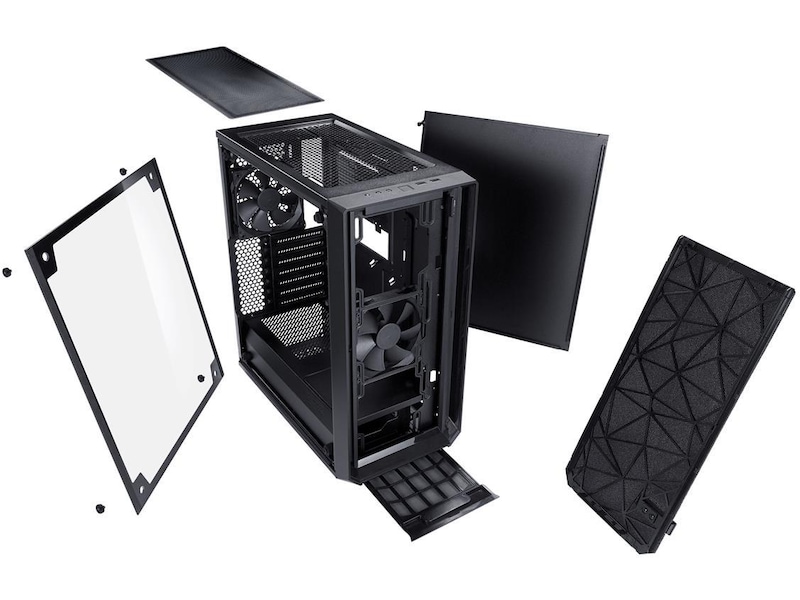 Toppanelsstøvfilter, Maskefrontpanel, Støtter 120/240 mm-radiator på toppen, Støtter 120 mm-radiator bak, Frontstøvfilter, Bunnstøvfilter, Støtter 120/140/240/280/360-mm radiator i frontpanel