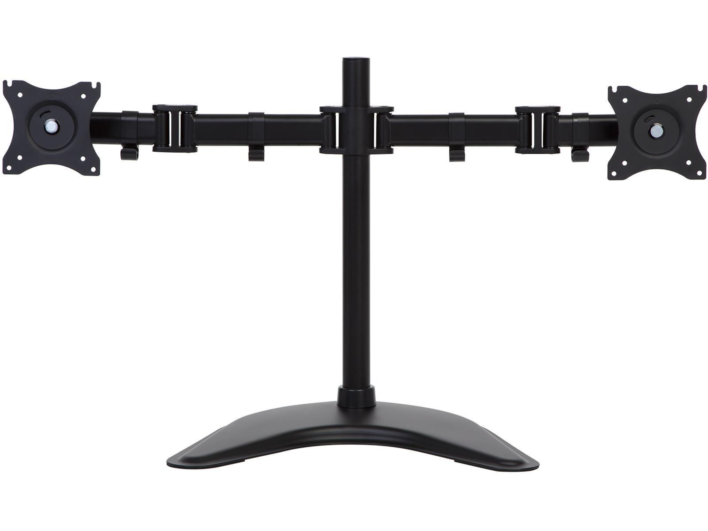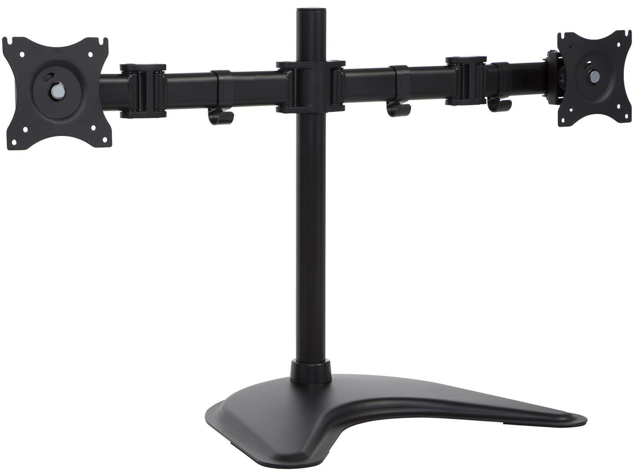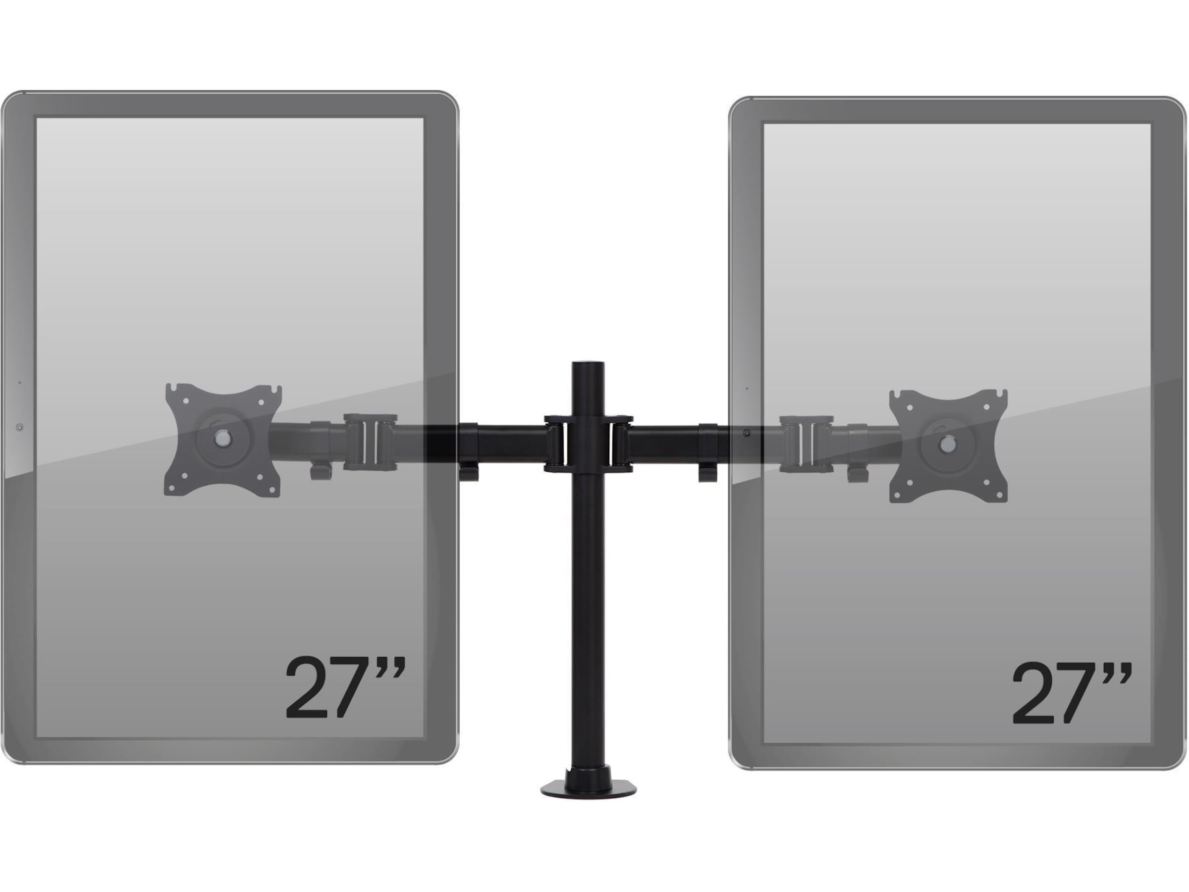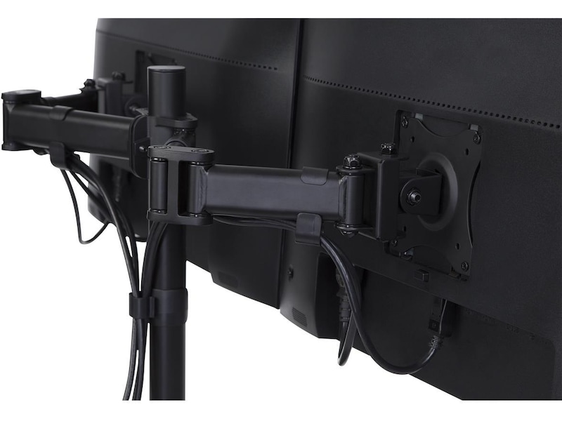 Dette skjermstativet leveres med en 75/100 mm VESA-plate med 360-graders rotasjon. Det lar deg sette skjermene i enten liggende (horisontal) eller stående visning (vertikal).