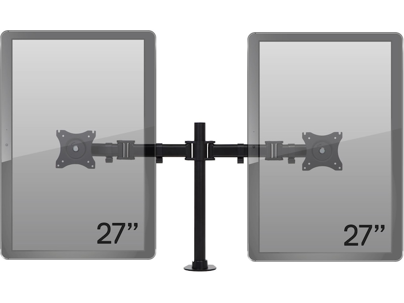 Dette skjermfestet/stativet lar deg montere to skjermer sammen på skrivebordet. Skjermene kan vinkles, roteres og vippes individuelt. Høyden på skjermene er også justerbar. iiglo-festet kan plasseres frittstående med et stabilt stativ eller festes med en C-klemme på skrivebordet ditt. Det leveres med en 75/100 mm VESA-plate, som gjør det enkelt å installere de fleste skjermer på 13–27".