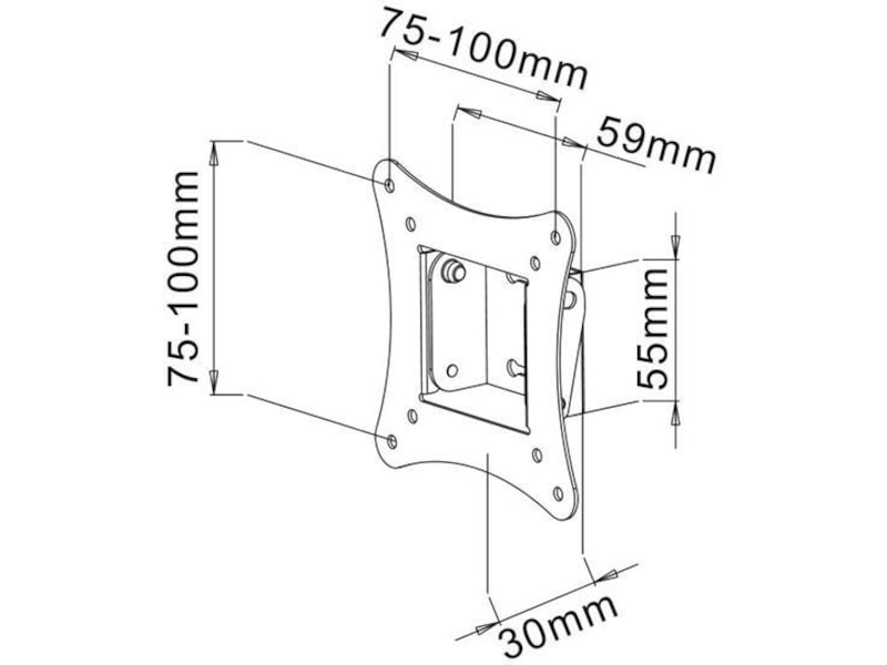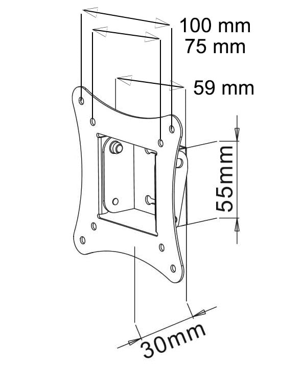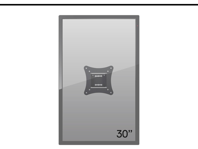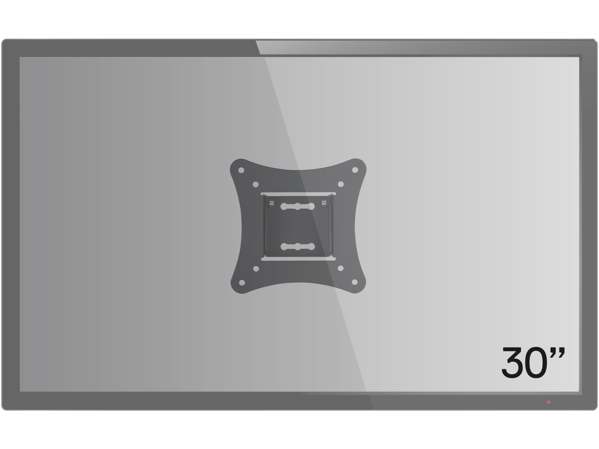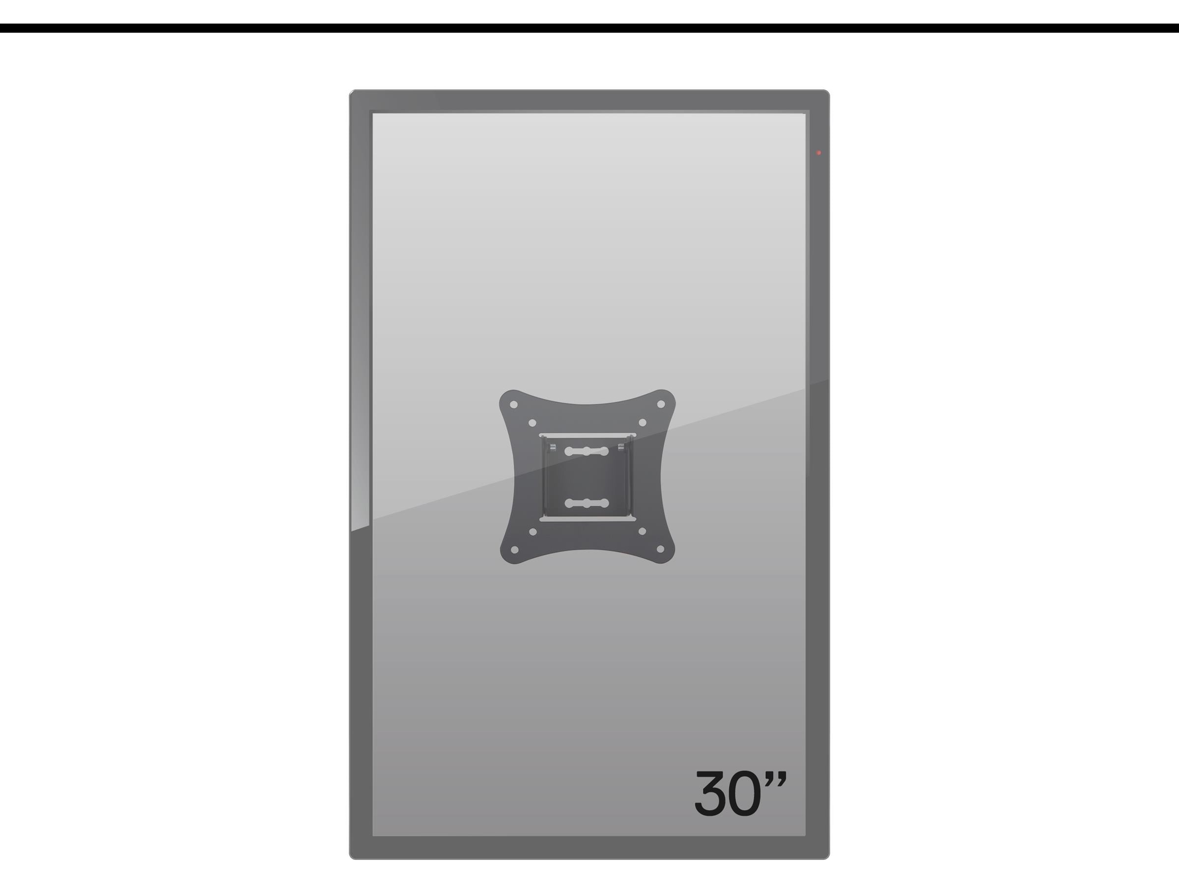 Dette veggfeste er meget enkelt å montere. Det er en enkel opphengsløsning for mindre flatskjermer. Den fastmonterer skjermen din, og den har liten tilt-mulighet fra 0-12grader. Festet er solid og skjermen din henger trygt i veggplaten. Passer til skjermer med både flat og kurvet bakside. Den bygger kun 30mm fra veggen. Du kan velge om du vil ha flatskjermen i landskap- (horisontal), eller portrettvisning (vertikal).