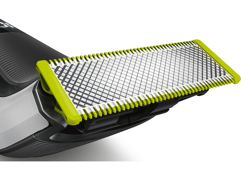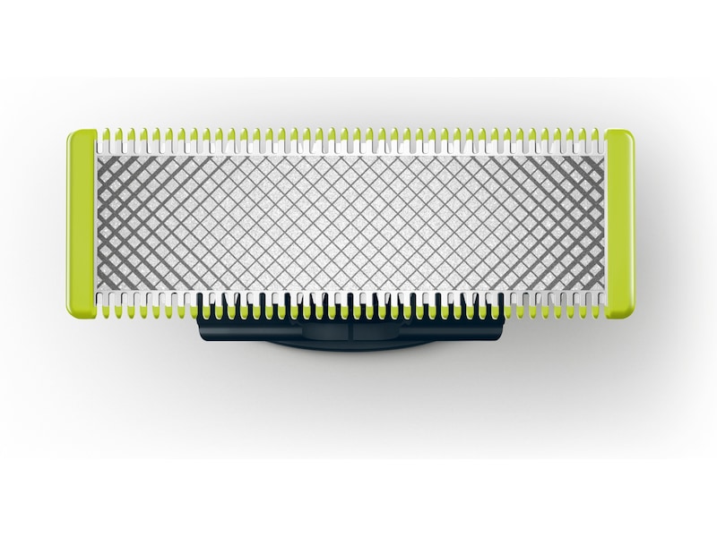 Philips OneBlade er en revolusjonerende teknologi utviklet for ansikts- og kroppshår. Den kan trimme, kante og barbere alle hårlengder. Det doble beskyttelsessystemet – et glidende belegg og avrundede tupper – gjør barberingen enklere og mer behagelig. Barberingsteknologien består av en hurtigbevegende kutteenhet (200x per sekund), så den er effektiv – selv på lengre hår.