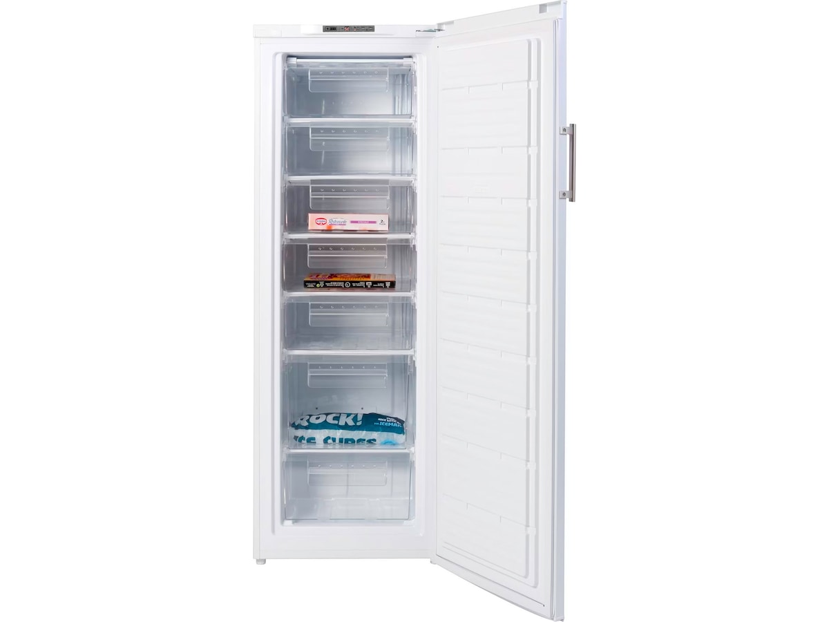 7 romslige skuffer med gjennomsiktige fronter gir deg god oversikt over fryseskapets innhold – så du enkelt ser hva du til enhver tid har liggende i fryseren. Skuffene teas lett ut ved rengjøring. Dette skapet har manuell avriming.