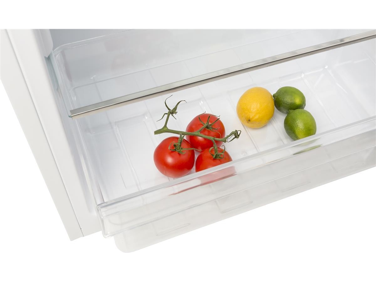 Kjøleskapets interiør er utformet med praktiske løsninger og fokus på fleksibilitet. Det er fem solide glasshyller som er enkle å ta ut for rengjøring – og du kan selvfølgelig plassere dem der du måtte ønske for å optimalisere utnyttelsen av kjøleskapsrommet. I tillegg finnes det en skuff med dekkeglass for oppbevaring av grønnsaker. I døren finner du fem hyller. Disse kan du enkelt flytte for å tilpasse dine behov. Et innvendig LED lys sørger for at du alltid har full oversikt over matvarene dine.